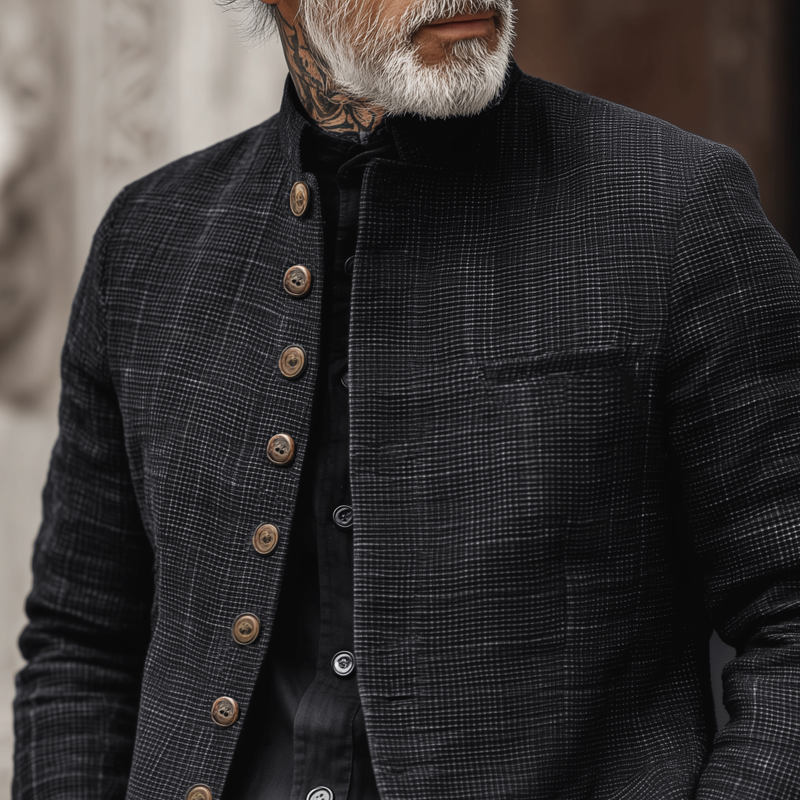 • Men's Woven Textured Plaid Stand Collar Single-Breasted Jacket MTA2897H4Z