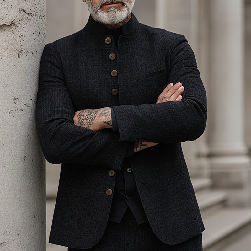 The Men’s Woven Textured Plaid Stand Collar Single-Breasted Jacket blends classic patterning with modern tailoring. Its stand collar and textured plaid elevate everyday outfits, offering a versatile and polished layer for year-round wear.