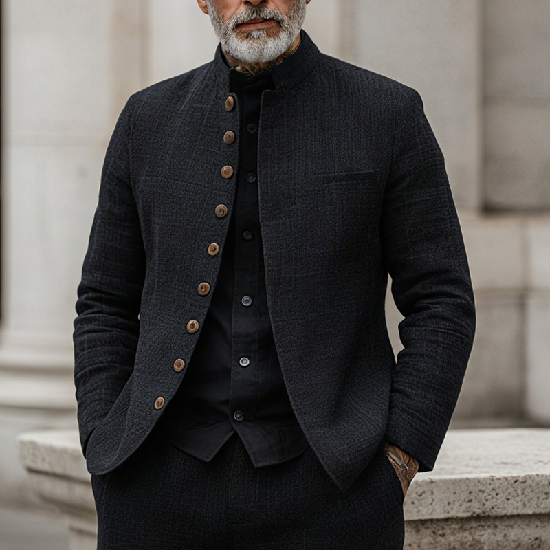 Product Name: Men’s Woven Textured Plaid Stand Collar Single-Breasted Jacket