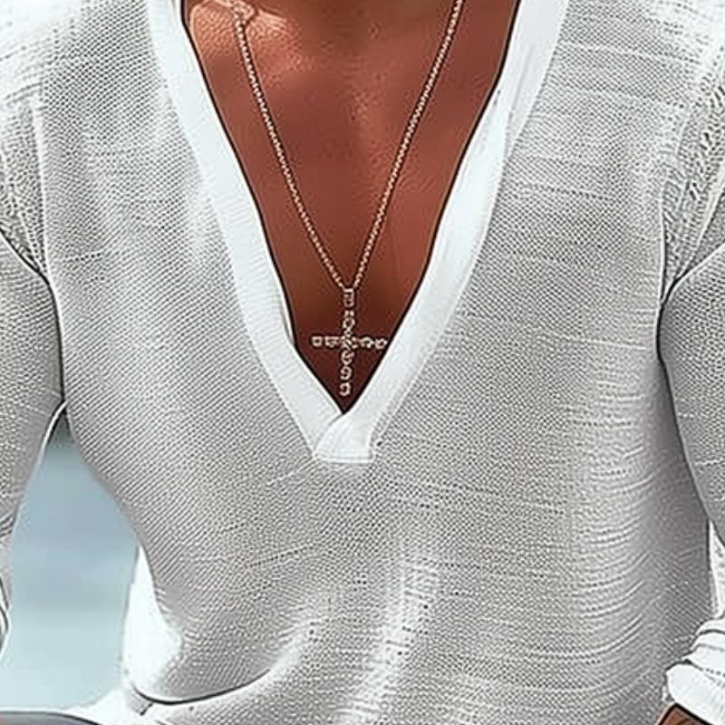 Design: Features a classic V-neck and a loose fit, offering a relaxed and stylish look suitable for various occasions.