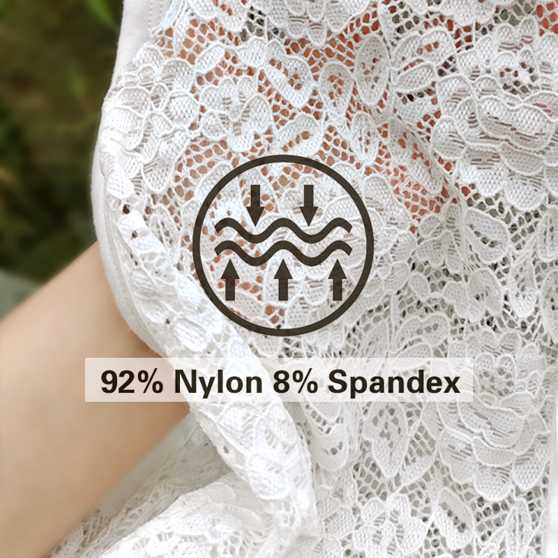 • Material: Soft, breathable lace fabric, made of 92% nylon and 8% spandex, slightly skin-permeable