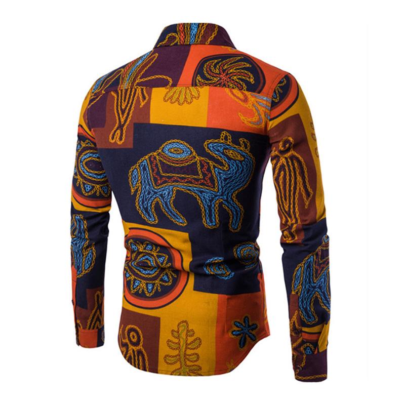 Men's Vintage Ethnic Printed Slim Long Sleeve Shirt 52004520M